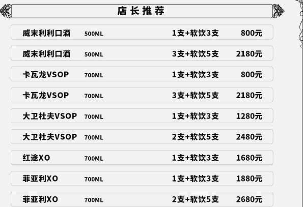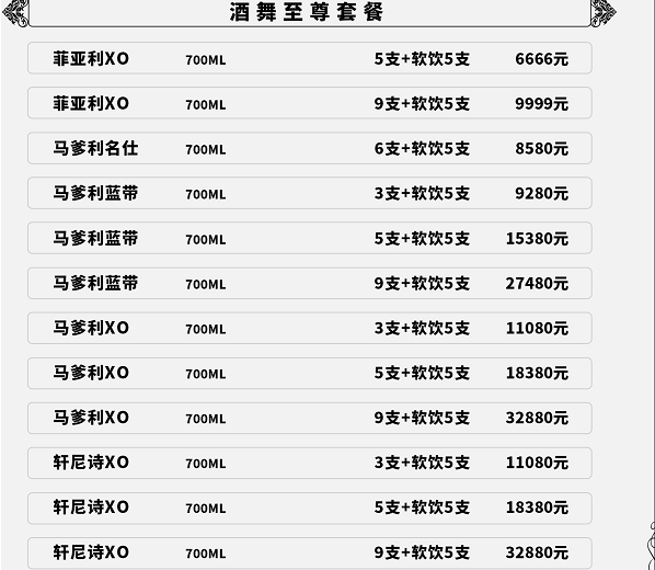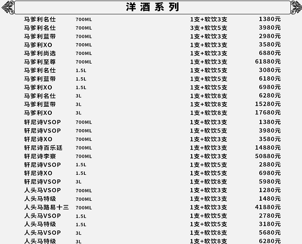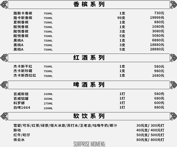 广州路斯卡CLUB酒水单(仅供参考)